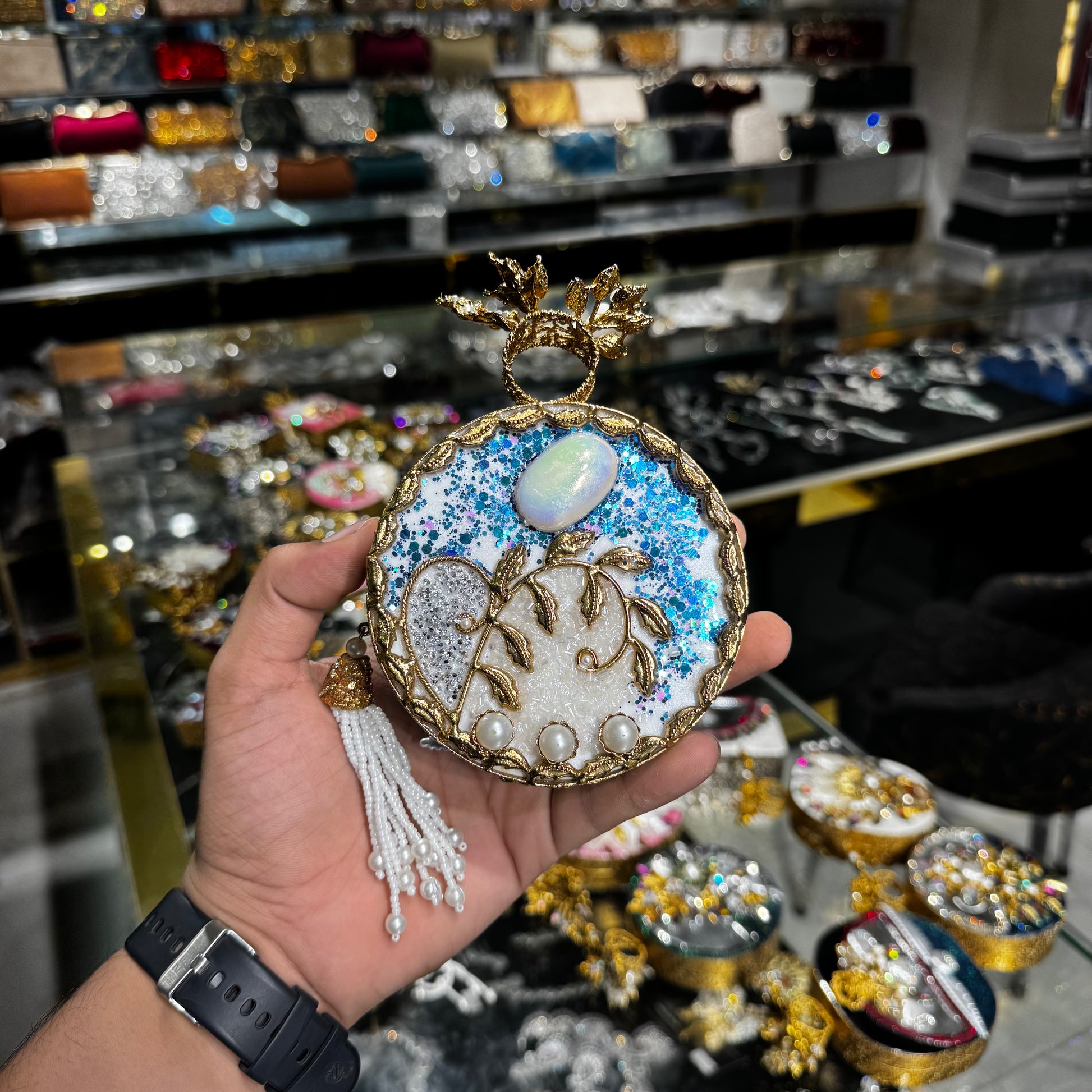 The unique knuckle-ring handle adds a bold and regal touch, allowing you to carry it effortlessly with style. Perfect for weddings, parties, and festive occasions, this clutch is not just an accessory – it’s a statement.
