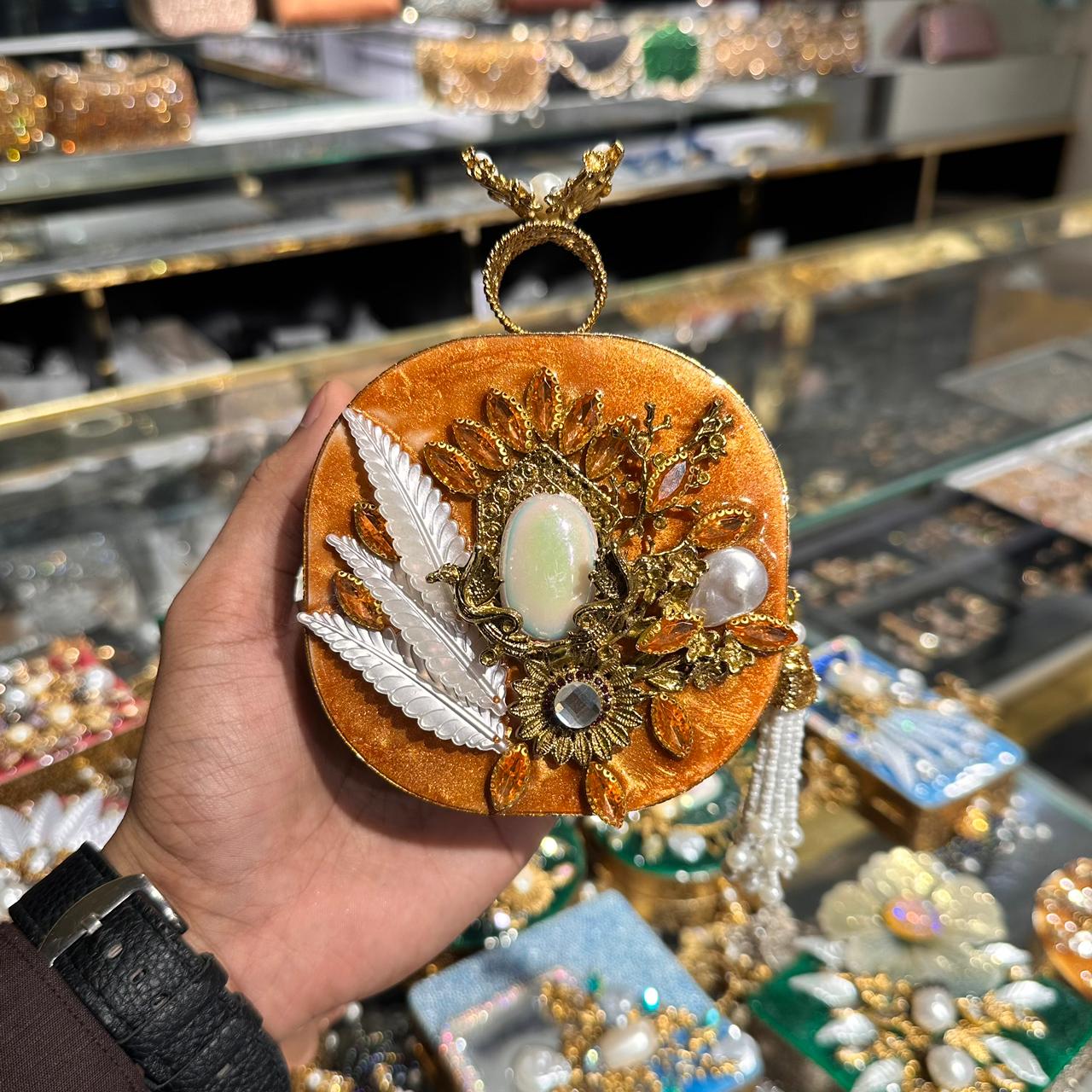 The unique knuckle-ring handle adds a bold and regal touch, allowing you to carry it effortlessly with style. Perfect for weddings, parties, and festive occasions, this clutch is not just an accessory – it’s a statement.