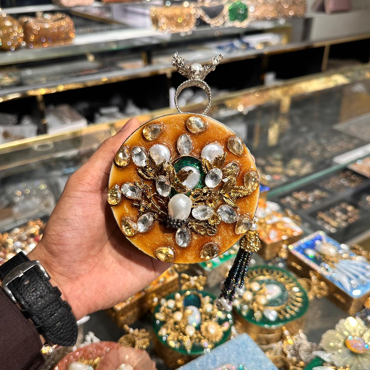 The unique knuckle-ring handle adds a bold and regal touch, allowing you to carry it effortlessly with style. Perfect for weddings, parties, and festive occasions, this clutch is not just an accessory – it’s a statement.